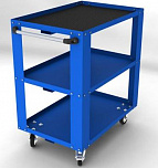 Для размещения и хранения подручного инструмента. Оснащена поворотными прорезиненными колесами размером 4" х 1" (2 колеса оборудованы тормозом). 2 стальные боковые ручки. 3 полки (грузоподъемность каждой полки 40 кг).