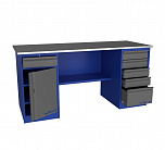 Двухтумбовый. Допустимая нагрузка на столешницу 1000 кг. Опорные элементы выполнены сварными из холоднокатаной стали. Для выполнения сборочных, ремонтных, слесарных, монтажных и других видов работ на производстве, в сервисных центрах, мастерских, гаражах, а также для обучения технологии в учебных заведениях. Комплектуется полкой-стенкой, расположенной под столешницей для удобного размещения габаритного инструмента и оснастки. Размеры верстака: 855x1796x696 мм. Вес: 132 кг. Поставляется в 4 комплектациях на выбор.