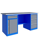 Верстак двухтумбовый 1800 ML0/ML5 поставляется в разобранном виде (4 элемента). Нагрузка на столешницу до 600 кг. Стандартный цвет: корпус - серый глянец RAL 7030, ящики и двери тумб - синий RAL 5017. Размеры (ВхШхГ) 855х1800х700 мм. Вес 105 кг.