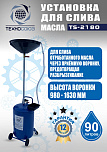 Установка для слива/откачки масла. 90 л. Комплектация: щупы - 2 жёстких + 4 гибких, контроль уровня, манометр (давление/вакуум), лоток. Подключение к пневмолинии - быстросъём.