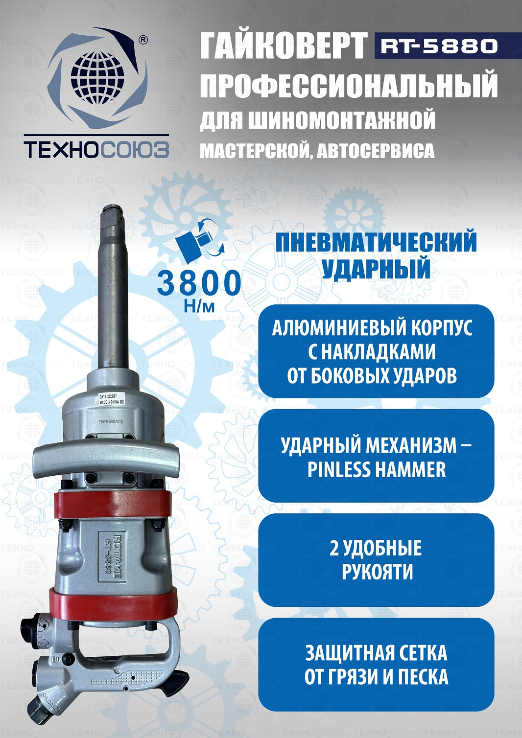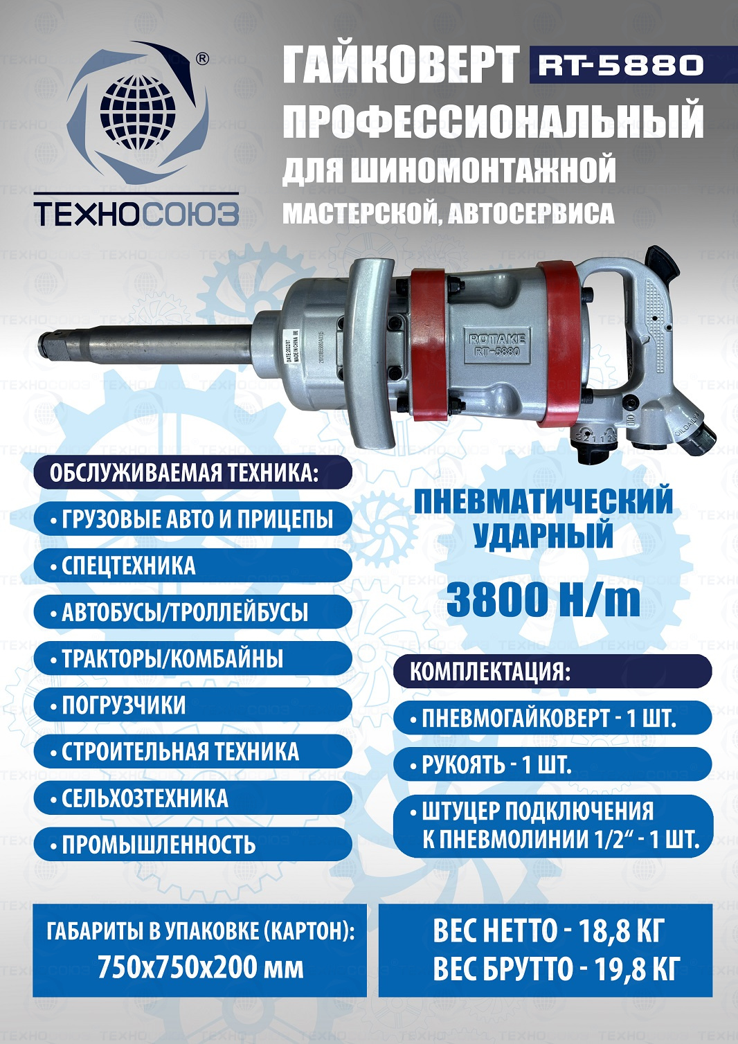 Гайковерт грузовой 1”. Ударный. Крутящий момент 3800 Нм. Длинный вал 220 мм. Алюминиевый корпус с накладками от боковых ударов. 2 рукояти для длительной и комфортной работы. Реверс + 6 скоростей. Вес - 18,8 кг. Гайковерт пневматический ударный профессиональный для грузовых автомобилей, автобусов, троллейбусов и спецтехники. Рекомендуемое применение – слесарные мастерские, шиномонтажные мастерские, автотранспортные предприятия, производственные предприятия, на строительных площадках и предприятиях при монтаже металлоконструкций.