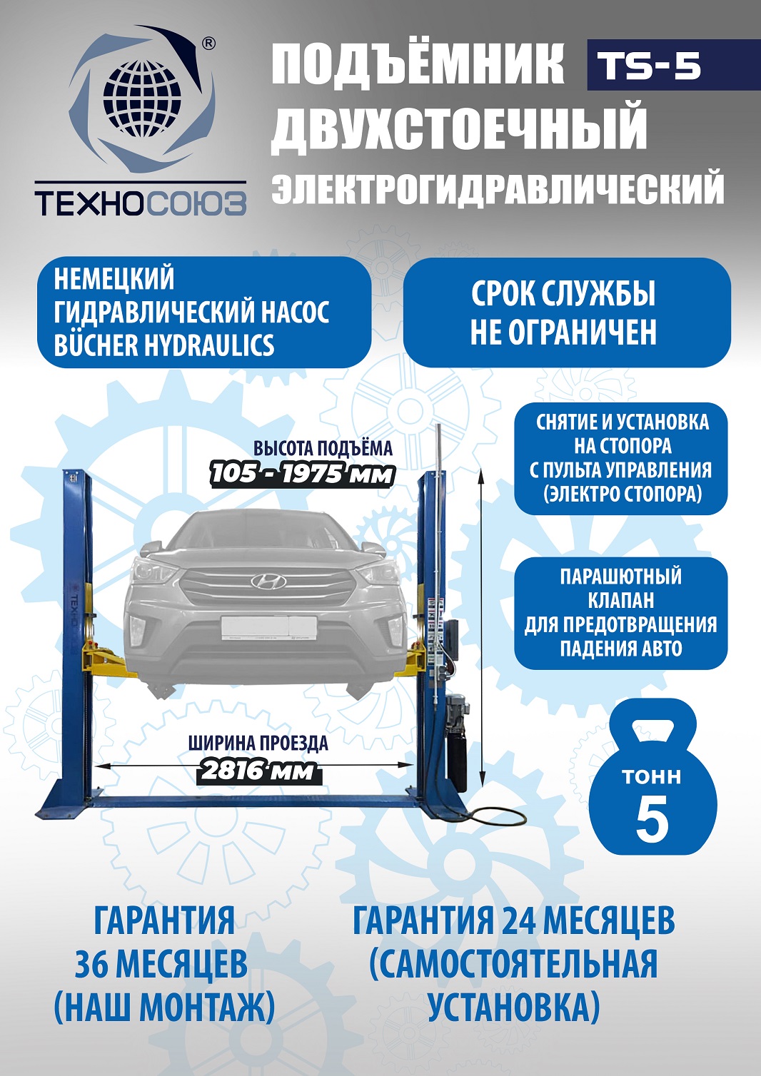 * На данные модели подъемников, предоставляется расширенная гарантия, при условии монтажа произведенного сервисной службой Техносоюз.