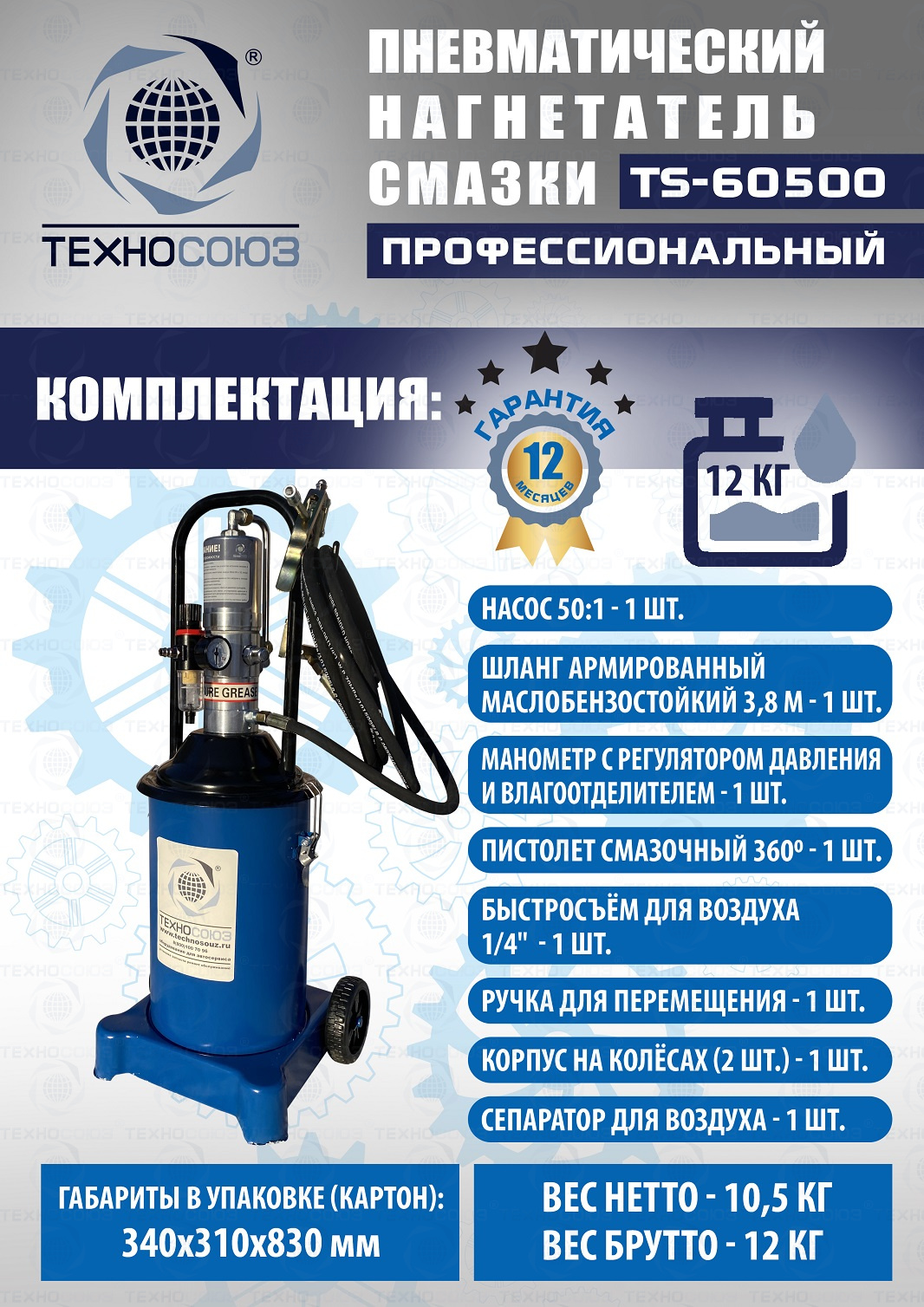 TS-60500 Нагнетатель смазки пневматический 12 л